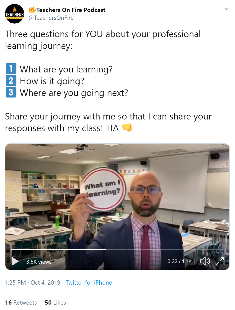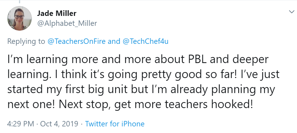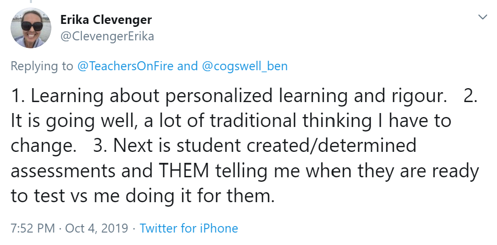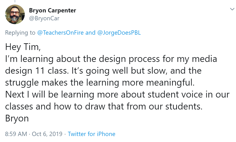 Encouraged by this activity, I then threw out the Three Big Questions to my PLN. I tweeted a challenge to educators in my professional learning network to tell me about their own learning journeys.